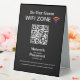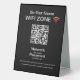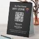 A simple custom connect to Wifi business pedestal sign template in a modern minimalist style which can be easily updated with your QR code, network details or custom text.
