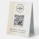 Elevate your space with a modern table sign that makes WiFi access seamless and stylish. Upload your custom QR code and logo, and add your network name and password in elegant white lettering. This eye-catching sign offers convenience for guests, clients, and customers, blending practicality with a sleek design.