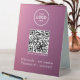 Elevate your space with a modern table sign that makes WiFi access seamless and stylish. Upload your custom QR code and logo, and add your network name and password in elegant white lettering. This eye-catching sign offers convenience for guests, clients, and customers, blending practicality with a sleek design.