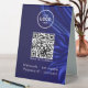 Elevate your space with a modern table sign that makes WiFi access seamless and stylish. Upload your custom QR code and logo, and add your network name and password in elegant white lettering. This eye-catching sign offers convenience for guests, clients, and customers, blending practicality with a sleek design.