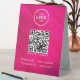 Elevate your space with a modern table sign that makes WiFi access seamless and stylish. Upload your custom QR code and logo, and add your network name and password in elegant white lettering. This eye-catching sign offers convenience for guests, clients, and customers, blending practicality with a sleek design.