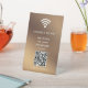 Elevate your space with this minimalist modern table sign, offering a hassle-free way for guests to connect to your WiFi. Upload your personalised QR code and logo, and seamlessly display your network name and password in crisp white lettering. A stylish, functional touch for any setting—perfect for businesses, cafes, or events.