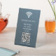 Elevate your space with this minimalist modern table sign, offering a hassle-free way for guests to connect to your WiFi. Upload your personalised QR code and logo, and seamlessly display your network name and password in crisp white lettering. A stylish, functional touch for any setting—perfect for businesses, cafes, or events.