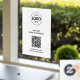 A simple custom connect to Wifi business window sign template in a modern minimalist style which can be easily updated with your QR code, network details, custom text and logo. Simply click 'personalise this design' to upload your company logo, web address and WIFI password information.