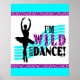 Poster for dancers featuring a ballerina dancer posing in a tutu and the text, "I'm Wild About DANCE!". The word "Wild" has a cheetah print pattern on it.