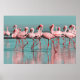Wild African birds. A group of African pink flamingos wandering around the blue lagoon on a sunny day. Great design for wild bird lovers. It gives a distinctive shape to the design.