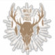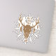 Wild and free text with sepia tint deer skull with antlers, feathers and starburst backing. Add one to your car window, your laptop and more...