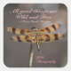 Wild and Free Quote Golden Dragonfly Square Sticker