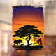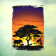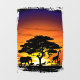 Stunning, Bright and Peaceful Sunset on Wild African Savanna Landscape with Wild Animals Shapes. Originally created with Hi Quality / Hi Resolugion Vector Graphic Art Technique Copyright BluedarkArt TheChameleonArt.