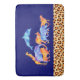 A bath mat designed with an exotic orange coloured leopard print border along the bottom. Illustrated with a digital watercolor image of a herd of wild animals