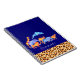 Spiral notebook designed with an exotic orange coloured leopard print border along the bottom. Illustrated with a digital watercolor image of a herd of wild animals