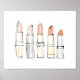 A colourful array of lipstick as a nod to the fashion forward in your life. This scene features a stunning sketch creating a trendy lipstick design for the modern fashion forward people among us. Placed on a colourful background, this delicate sketch adds some girly fun to any setting. Cute yet chic styles for your home or office space. | Beauty and Sass Pink II by Sue Schlabach