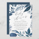 Our Wild Azure baby shower invitation features your baby shower details in chic off-black, framed by painted watercolor foliage in icy shades of navy and sky blue. A fresh take on the botanical trend with wintry leaves and elegant calligraphy accents.
