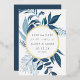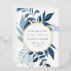 Our Wild Azure save the date card surrounds your wedding details with a circular border of vibrant watercolor foliage in wintry shades of dusty blue, trimmed with gold foil A modern yet organic choice for winter weddings featuring intricately painted botanical elements.