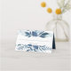 Chic winter botanical place card design features a top and bottom border of watercolor foliage and leaves in icy shades of blue. Space provided for guest name and table number. Cards reverse to reveal a matching botanical frame with your initials and wedding date inside. Designed to match our Wild Azure wedding and event collection.
