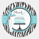 Zebra chic print with turquoise birthday cake with ribbon and bow trims.
