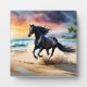 Black stallion horse galloping on the beach, beautiful watercolor painting.