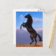 Wild Black Stallion Rearing Horse Postcard