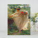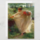 This design features a painting by the English artist Sir Edward John Poynter (1836–1919), who served as President of the Royal Academy of Arts. It shows a lovely young woman who is wearing a diaphanous cream-coloured dress made out of thin fabric. The contours and curves of her beautiful body can be seen through the clothing. The woman is walking in a rural idyll as she collects some red flowers that are growing on the hillside. She has a basket in one hand that she is using to gather the bright colourful flowers that she has collected. It is an incredibly impressive depiction of feminine beauty and the delights of nature. There is grass growing on the hills and fills surrounding the young woman, and there is a cluster of trees growing on the horizon. The original artwork was painted by Edward Poynter in 1880.
