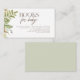 Our wild botanical rustic baby shower books for baby enclosure card features stunning natural colours and forest greenery throughout. Find matching items in our shop for a fully cohesive shower celebration!