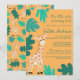 Wild Cute Green Orange Giraffe Leaves Birthday Invitation