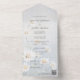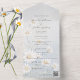 Captivate your guests from the moment they open their invitations with the allure of wild daisies against a pale blue grey backdrop. This All-in-One wedding invitation offers convenience, elegance, and a touch of nature that perfectly encapsulates the spirit of your special day. Order now to begin your journey to a truly unforgettable wedding experience. The All-in-One wedding invitations are both beautiful and practical by combining the wedding invitation with an easy to remove perforated RSVP postcard. They are also quick and easy to prepare for mailing. Simply address the invitation, fold the back flap and seal with the included clear stickers. Once your guests receive the pre-addressed invitation they simply tear off the perforated RSVP card and drop it in the mail. The addition of the QR code allows your guests to easily access your wedding website for information including reception details and dinner choices!