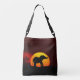 Wild elephant silhouette and sunrise on a jungle background Crossbody Bag. Editable text only on the front site.