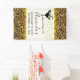 A bachelorette party welcome banner with a stylish pattern. Exotic black leopard spots on a gold background. Wild yet elegant style. A black silhouette martini glass adds a party flair to the design. Faux gold foil borders frame the party text. Faux gold confetti also decorates the design.
