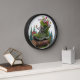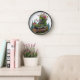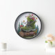 The size of the clock is dramatic and the abstract alcohol ink design is soothing and intricate at the same time. I chose the black frame that adds pop to the blue and gold design. The gold printing would be better in a slightly darker or larger font. I love it and I’m looking for just the right place in ny new apartment. I would recommend this clock for a personal gift or a present. I feel that the quality is excellent for the money! I’m a bit of a clock nut so I’m pretty particular about my purchases. The clock is larger in diameter than many if the clocks I have, so it stands out very well. I think a slightly darker printing color and a moderately larger size would best suit a professional decor or add more impact in a work place item.