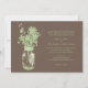 Perfect for a country style wedding or maybe you just love Mason Jars! Old vintage Mason Jar hanging on a hook with country wildflowers. A KRAFT BROWN background with light green (sage) drawing of a Mason Jar filled with wildflowers. If you have any questions on this design or want a colour change please email me paula@labellarue.com Also check for the RSVP, RECEPTION and GUEST SEATING Cards to match!