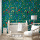Wild Flowers on a Midnight Blue Background Wallpaper