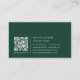 Chic botanical business cards feature your name or company name flanked by a top and bottom border of painted watercolor botanical leaves in rich shades of hunter and forest green. Add your full contact information to the back in white on coordinating dark green, along with a customisable QR code.
