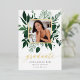 Our Wild Forest graduation announcement frames a square photo of your graduate with an elegant square border of lush watercolor foliage in shades of emerald and forest green, with real gold foil trim on a crisp white background. Personalise with your graduate's name, school, and graduation year beneath. Add a personal message to the back, along with an additional photo.