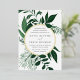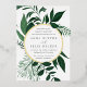 Our Wild Forest wedding invitation surrounds your wedding day details with a circular border of vibrant watercolor foliage in wintry shades of forest green. A modern yet organic choice for winter or spring weddings featuring intricately painted botanical elements.