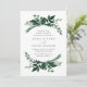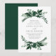 Our Wild Forest wedding invitation surrounds your wedding day details with a round border of fresh watercolor foliage in wintry shades of hunter green and forest green. A modern yet organic choice for winter or spring weddings featuring intricately painted botanical elements.