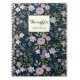 A pattern of whimsical ranunculus flowers in dusty mauve, pink, and blush adorn this pretty journal. Personalised with your heading and name on the front cover. Contrasting deep blue background gives it a feminine and modern vintage look