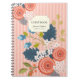 A lovely illustration adorns this Spring or Summer garden themed wedding guest book that is adorned with apricot and coral ranunculus flowers, blush and pink cherry blossoms, blue floral buds and assorted greenery on an apricot peach and white stripe pattern background. Trendy and contemporary garden themed design is perfect for Spring, Summer, or outdoor weddings.