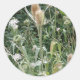 This sheet of round stickers features a photograph of a field of mixed flowering grasses and wildflowers.