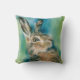 Accent your home with this pillow that features wildlife artwork picturing a brown hare in profile as it dances whimsically upright. The animal has long, black tipped ears and a perky yellow eye.