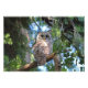 I captured this photograph of a hoot owl (also known as a barred owl) sitting on a tree in the forest when I felt his huge black eyes staring at me one day. There are some holly berries visible in the background from a holly bush. I loved how the owl's head seemed to turn almost entirely around so that he could stare at me. I took this picture right after the raptor had a run-in with a brave squirrel who crept along the tree branch several feet away from the old and told him off with a good scolding. The owl just sat there and looked at him and the squirrel ran off to safety. A happy ending!