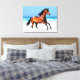 Canvas in a portrait of a beautiful wild horse galloping on a beach, with white surf and a blue sky