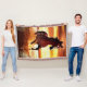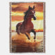Throw Blanket in a portrait of a beautiful wild horse galloping through the surf, against a sunset sky