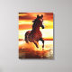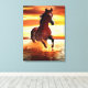 Canvas in a portrait of a beautiful wild horse galloping through the surf, against a sunset sky