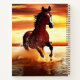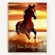 Journal in a portrait of a beautiful wild horse galloping through the surf, against a sunset sky