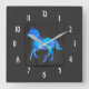 Wild Horse in Blue and Purple Watercolor on Black Square Wall Clock