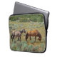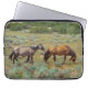 Wild horses are grazing in Wyoming field. They are free to roam. These two posed for a photo.