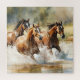 Puzzle with a beautiful watercolor painting of 3 wild horses running through a stream of water.