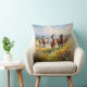 A beautiful pillow for cowboy decor and western art lovers, a gorgeous painting of wild horses running in a grassy field of wildflowers.
