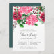 Elegant floral rehearsal dinner invitations feature a cascade of vibrant watercolor hydrangeas, blooming pink flowers, and lush green foliage. Personalise with your rehearsal dinner details beneath in a chic mix of block, serif and calligraphy typefaces. Includes space for both the wedding ceremony rehearsal and celebration or dinner to follow. Perfect for spring or summer rehearsal dinners.