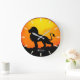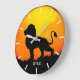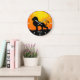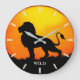 Wild lion silhouette, calligraphy and sunrise on a jungle Wall Clock. The lion is a powerful symbol of courage! Pursue your dreams!